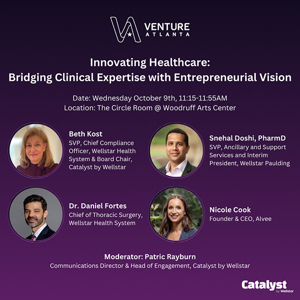 In this engaging panel discussion, hear from hospital presidents, C-suite health system leaders, and doctors on the cutting edge of innovation who are helping to inform venture investments at one of the largest health systems in Georgia—Wellstar. Catalyst, Wellstar's innovation and venture company, believes those closest to patients should be helping shape the problem statements and the products and solutions developed by startups. This panel will provide an inside-look at how Catalyst is using Think Tanks, pilot projects, discovery sessions and more to harness Wellstar's rich innovation heritage and clinical expertise to shape a healthier future.